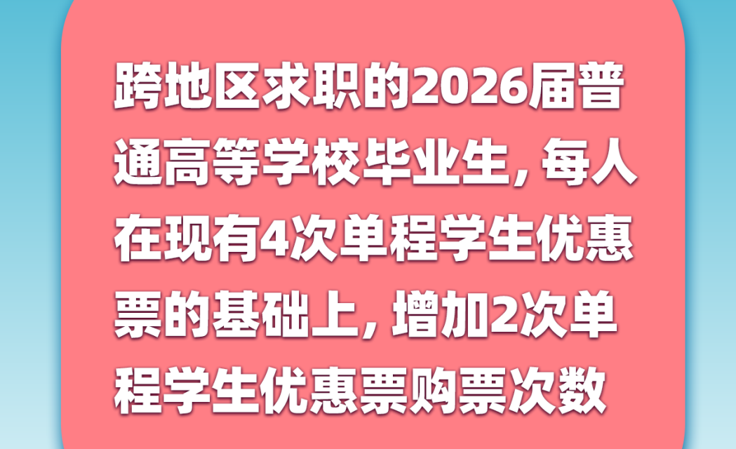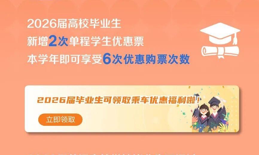@2026届高校毕业生,本学年新增2次单程学生优惠票